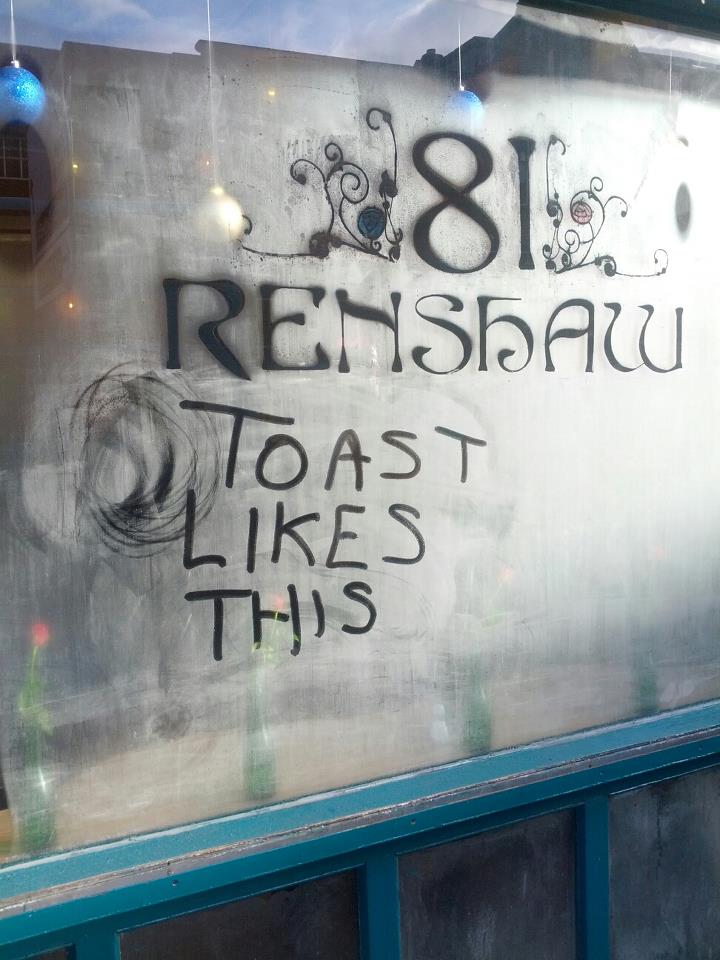 Merry Christmas readers, 81 Renshaw were the hosts for our Christmas Toast and what a beauty it was. Settling on somewhere in the City Centre that wasn’t going to be victim to the fast turnaround Christmas shopper ethic. We’d booked in and pre-ordered our breakfasts to ensure the Christmas special was one to behold – however as usual our identities were completely hidden.
